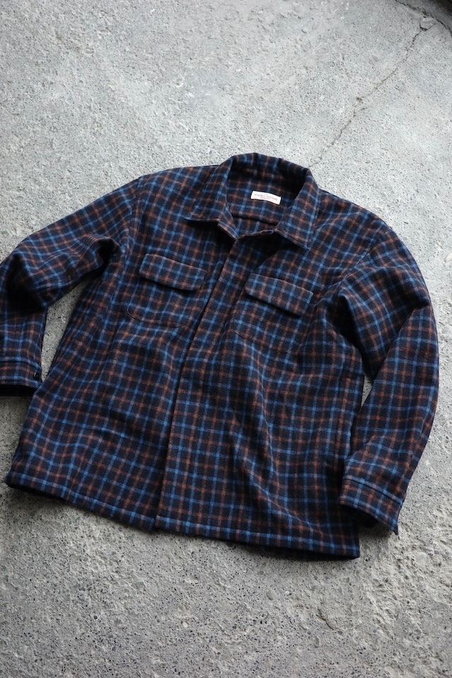 MING / Camp Collar Shirt (Wool)/Blue×Navy Check