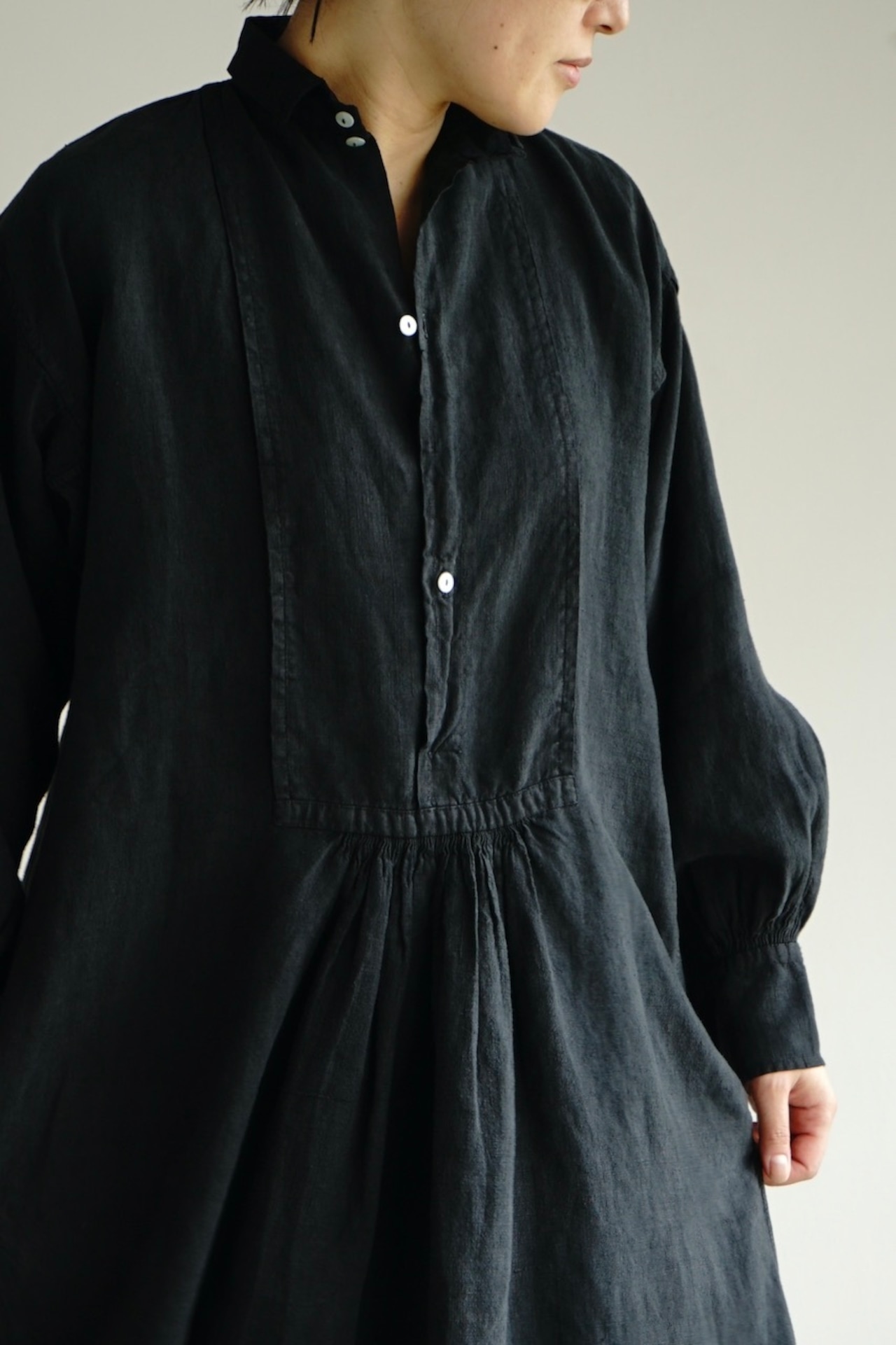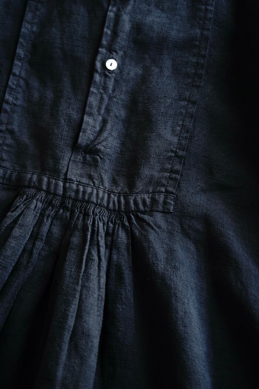 フランスのヴィンテージリネンスモックです。とても滑らかなリネンの風合いはヴィンテージならでは。袖口と首の後ろにはとても細かなシャーリングが施されており、細かな手仕事に目を奪われてしまう美しい1着です。