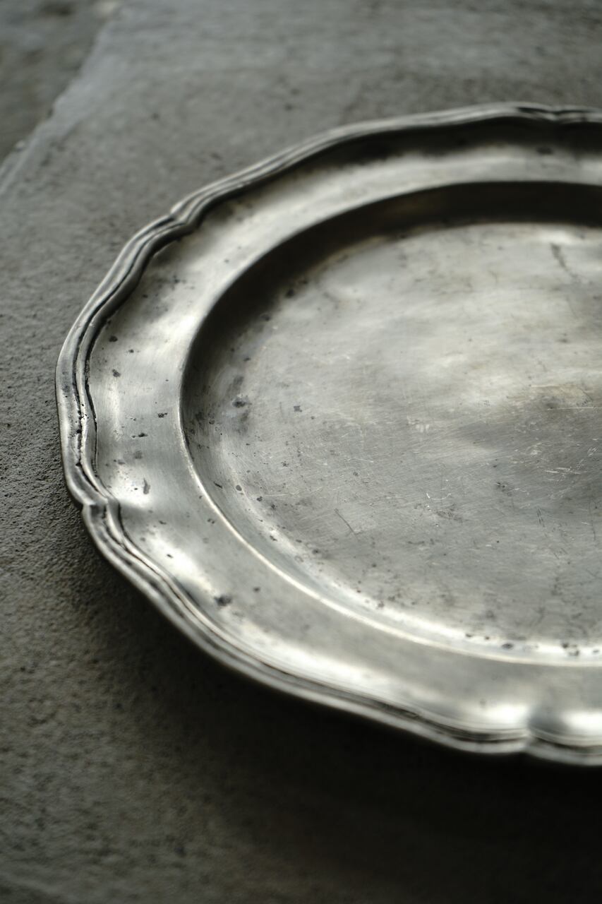 19世紀に作られたヨーロッパのピューター(エタン)皿です。