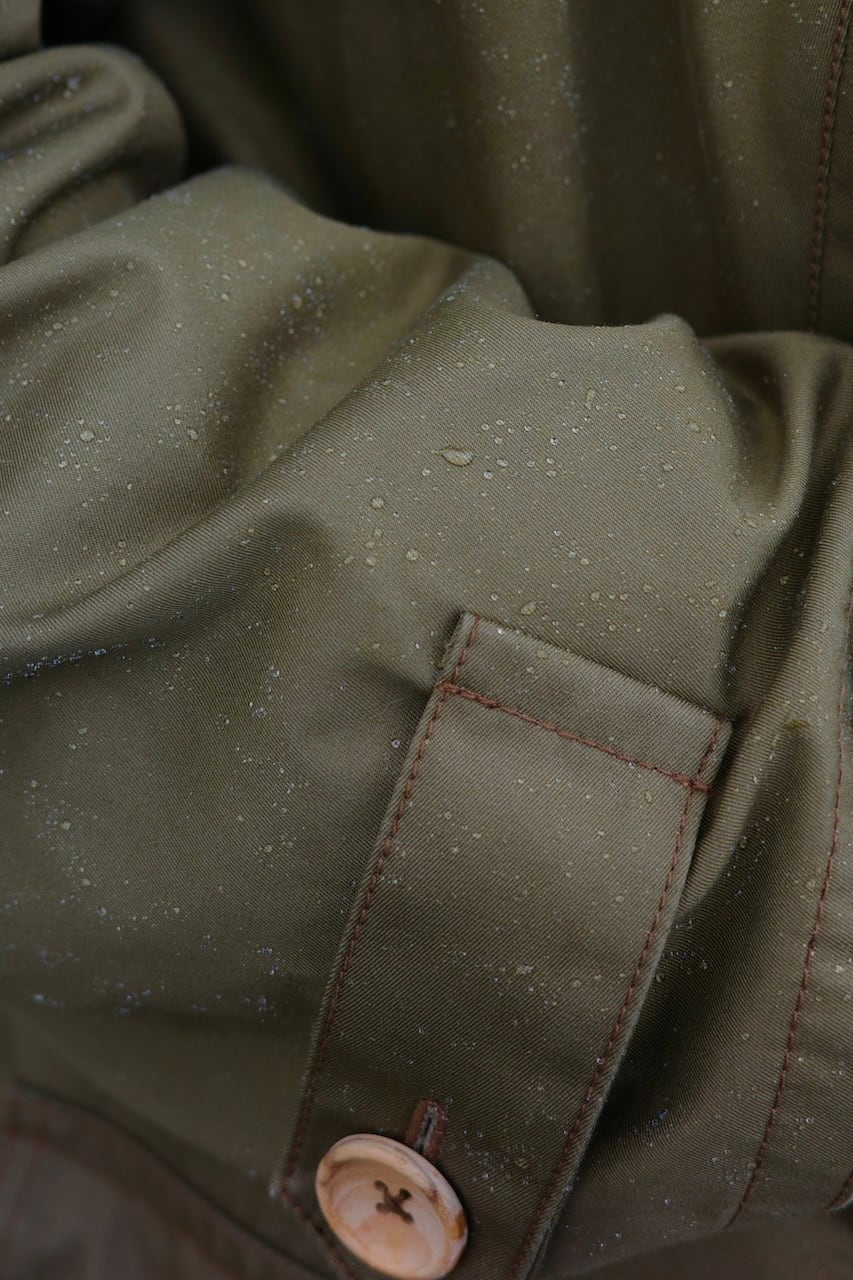 世界でも最長レベルの綿繊維を使用し、高密度に織り上げたコットン100%の生地です。人口の防水素材とは異なり、綿素材でありながら密度がかなり高い生地のため、水滴を垂らしても染み込まない防水性・防風性・通気性に大変優れた天然素材です。