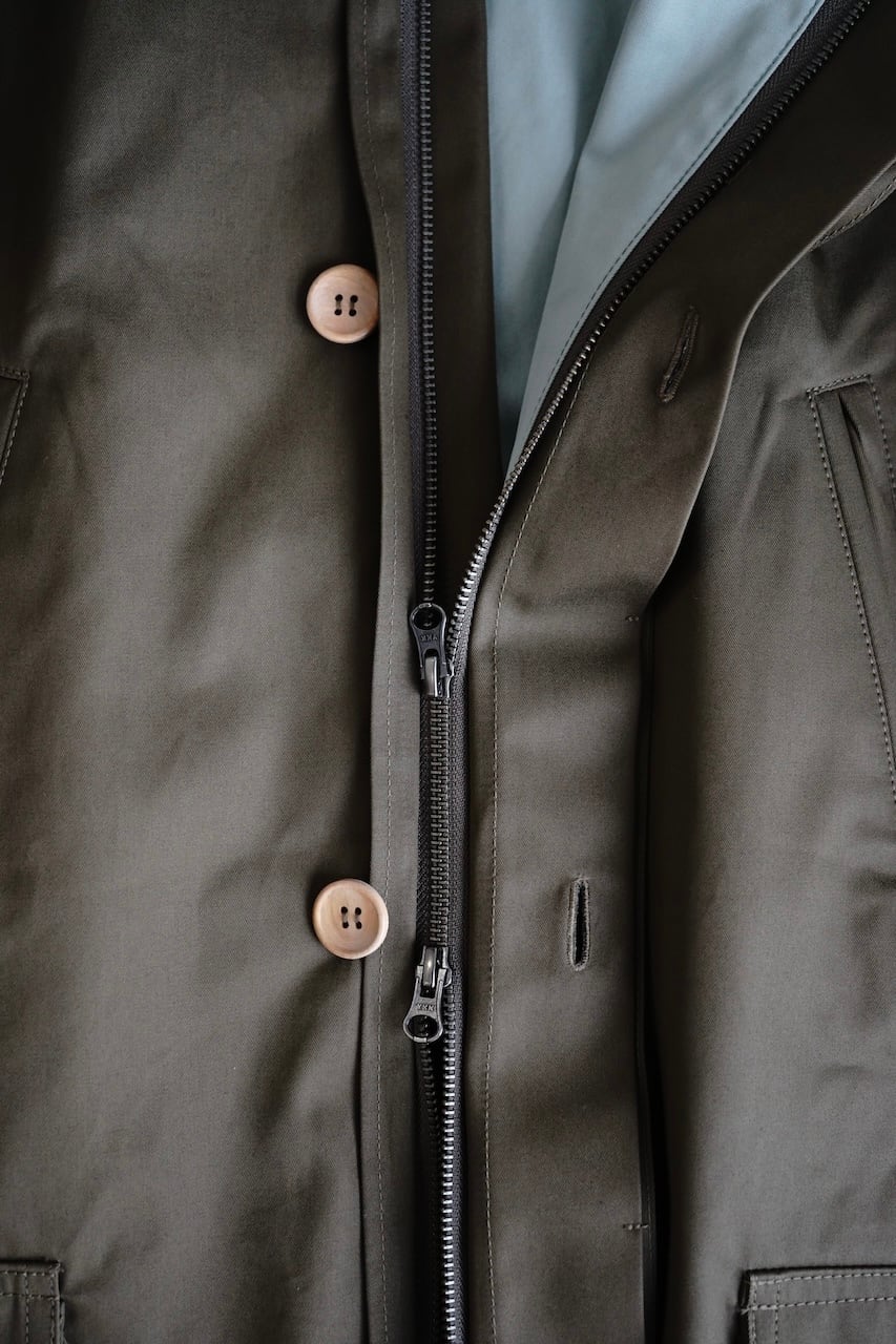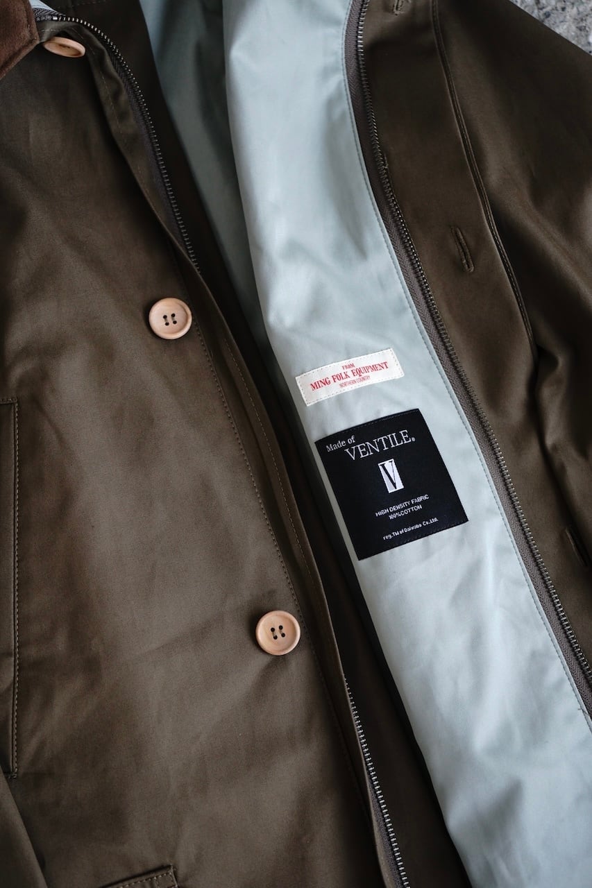 ミッドセンチュリー期の英国ファーマーウェアに存在したフード付きのコートをベースに、ヴェンタイル素材を贅沢使いしたMINGらしい1着。