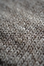 道産羊毛が持つ弾力と膨らみを活かしながら適度なシャリ感を出しています。強く撚っ多細い糸で、ニットの伸縮性を保ちながらカットソーの強さの出る糸にしています