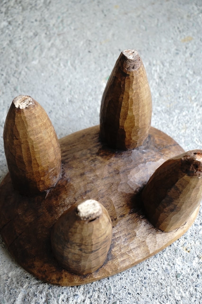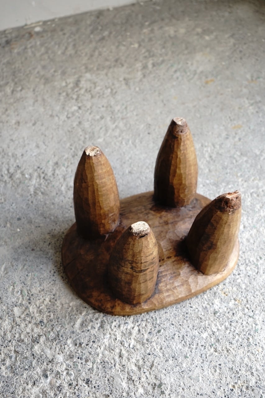 部族によって様々特色があるのですが、共通して1つの丸太からくり抜かれた一刀彫によるスツールです。丸太から生活に必要な椅子の形を想像してひたらすら削っていくのです。やはりそこには色々な思いや作り手の思想が宿っていると感じます。