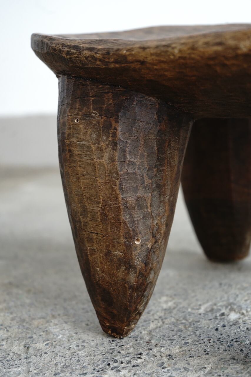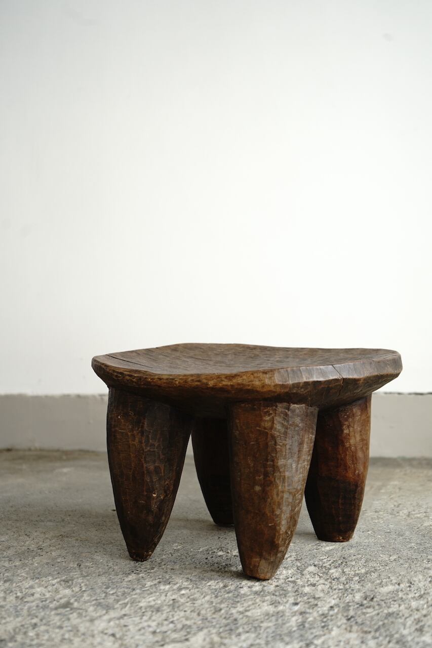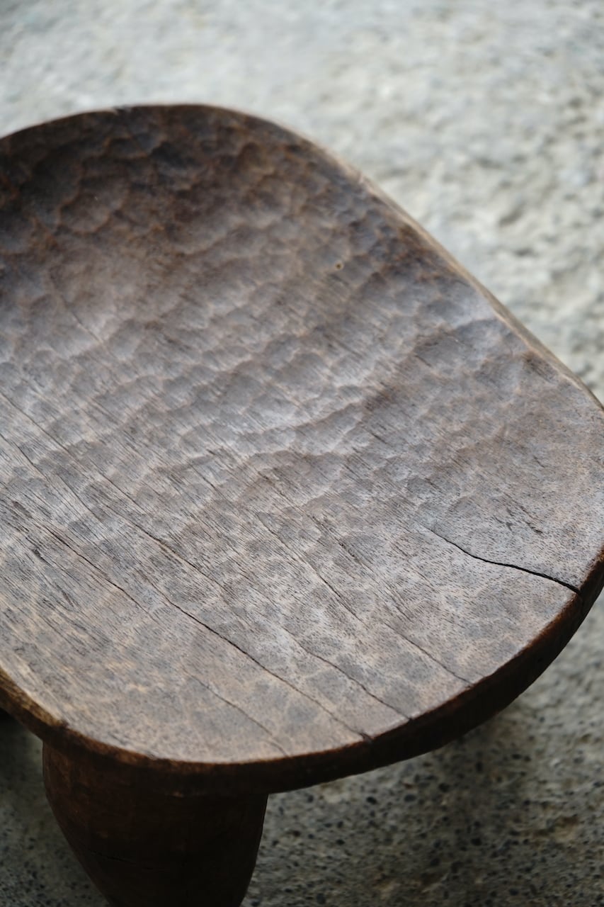 部族によって様々特色があるのですが、共通して1つの丸太からくり抜かれた一刀彫によるスツールです。丸太から生活に必要な椅子の形を想像してひたらすら削っていくのです。やはりそこには色々な思いや作り手の思想が宿っていると感じます。