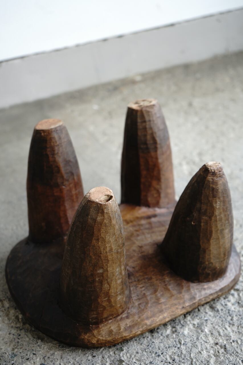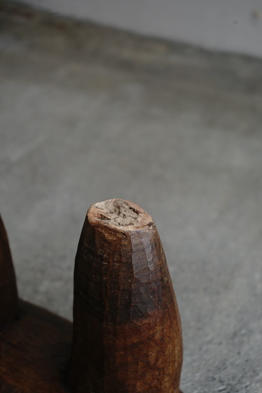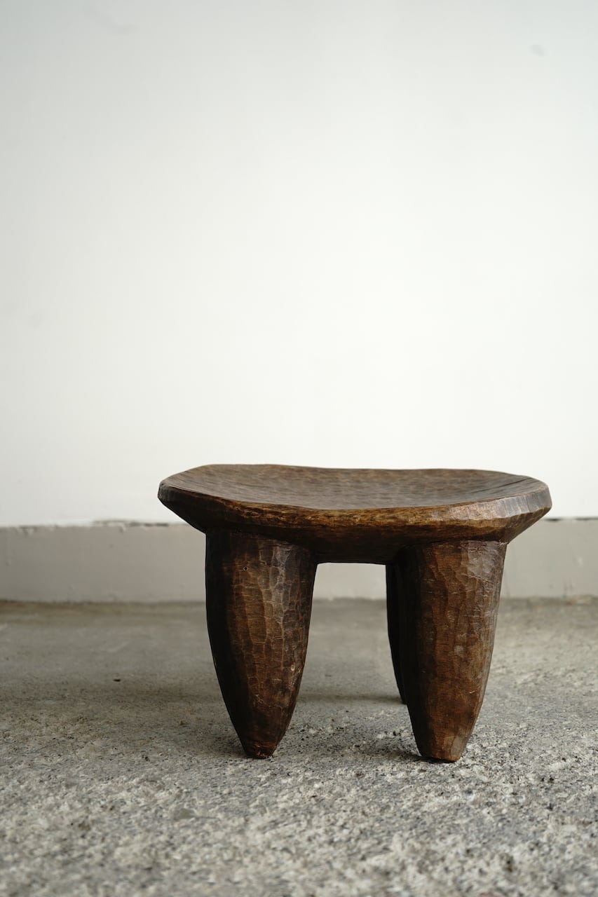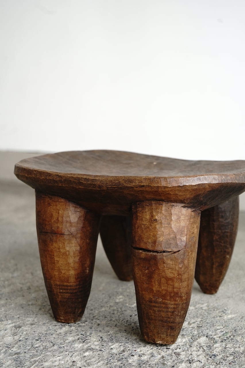 部族によって様々特色があるのですが、共通して1つの丸太からくり抜かれた一刀彫によるスツールです。丸太から生活に必要な椅子の形を想像してひたらすら削っていくのです。やはりそこには色々な思いや作り手の思想が宿っていると感じます。