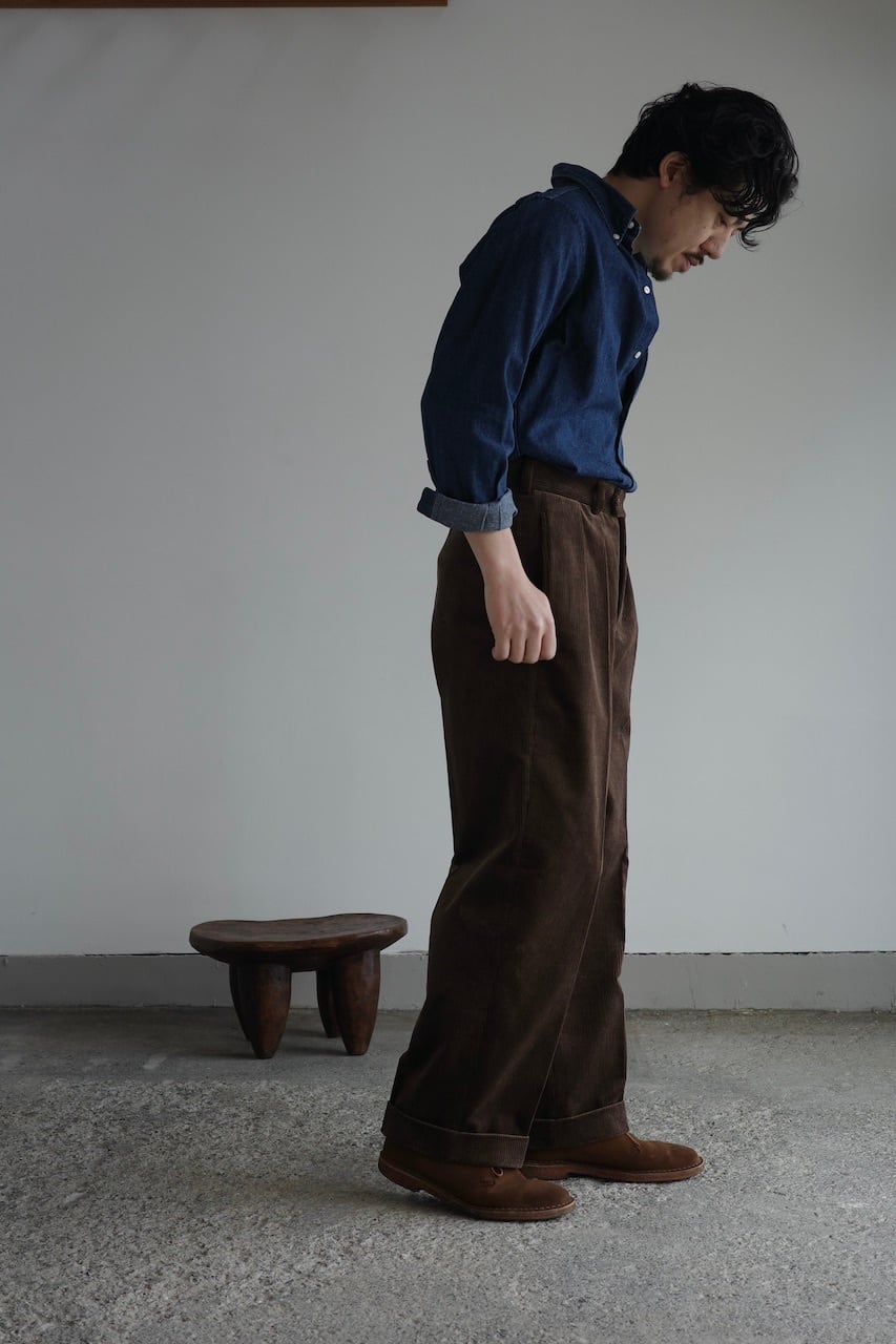 英国の紳士服に存在した2タックトラウザースを、米B.B社やR.L社がアメリカナイズドしたトラウザースから着想を得て制作した、MINGオリジナルの2タックトラウザース。