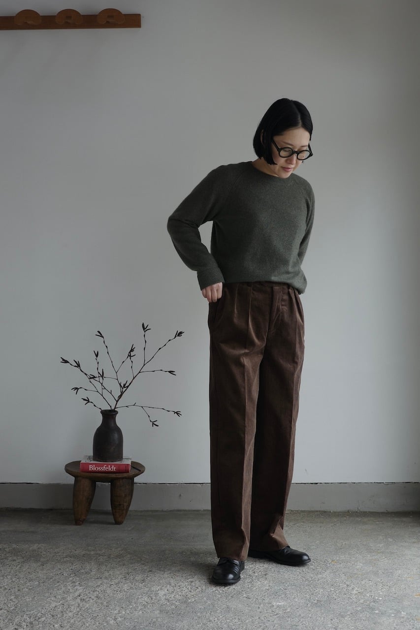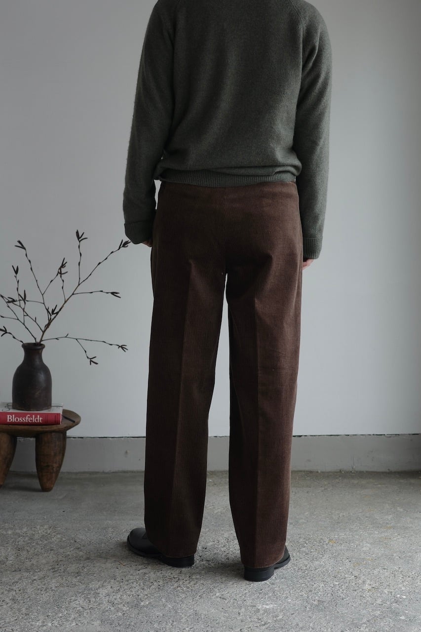 腰回りはゆったりと動きやすく、裾に向かって緩やかなテーパードシルエット。シンプルな装いに際立つような存在感がありつつも取り入れやすいバランスのトラウザースに仕上がりました。
