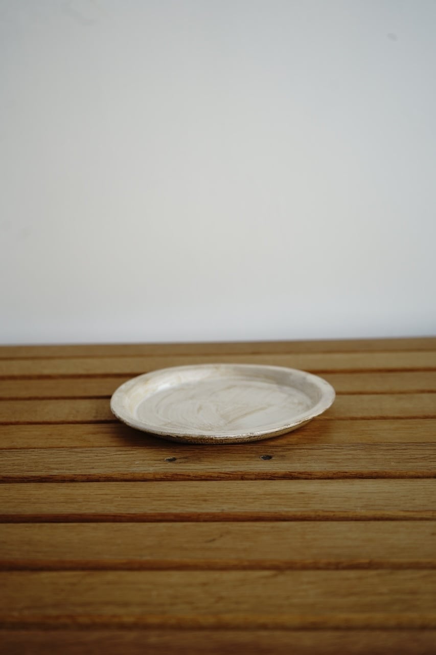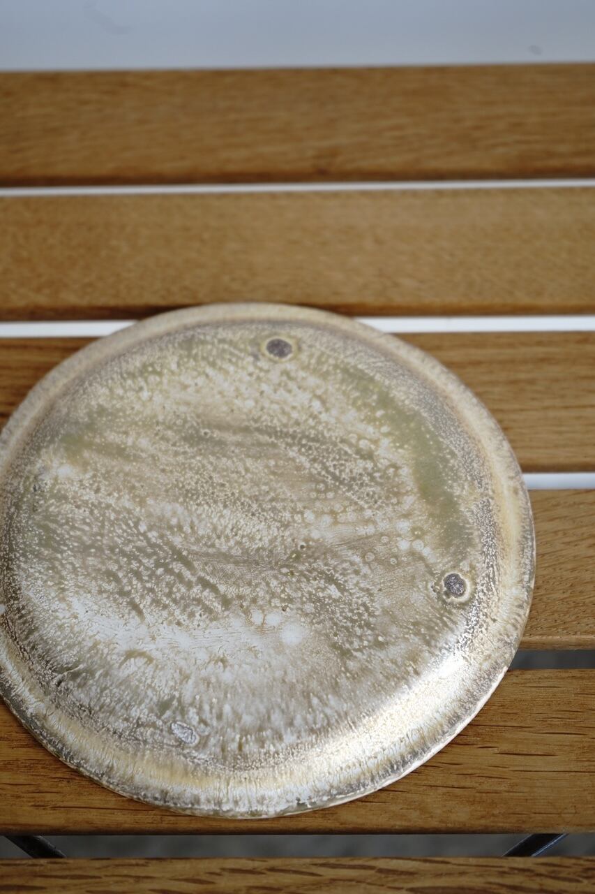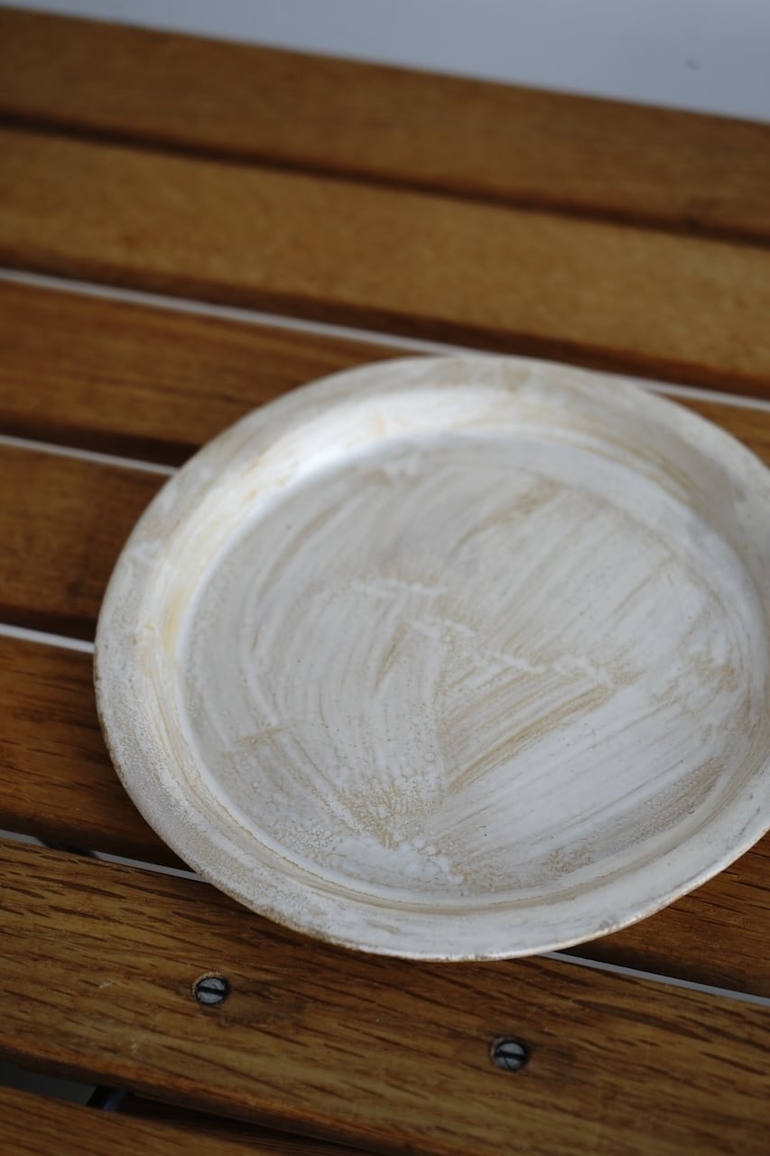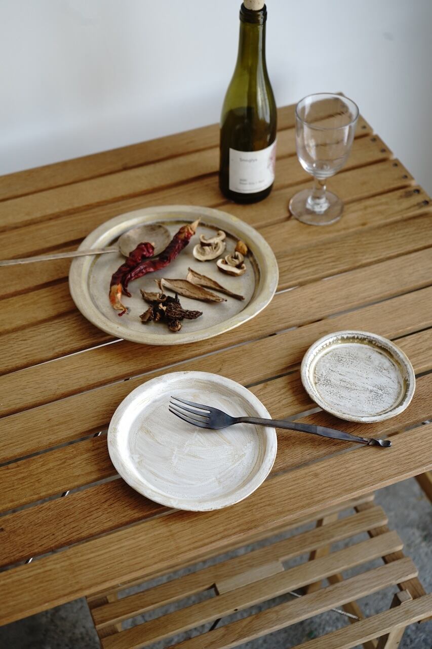 神戸市淡河のつくも窯にて作陶されている十場あすかさんの銀彩リム皿 S。
