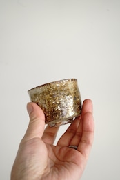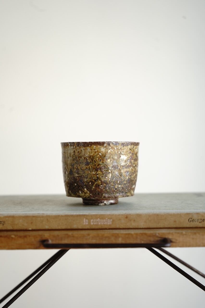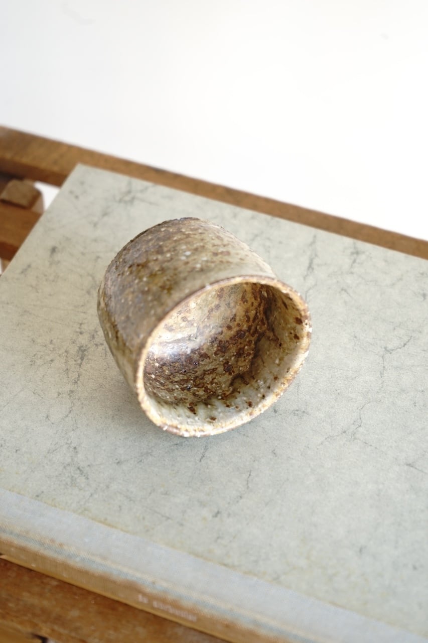 薪窯で焼成された、炎と土が生み出す偶然の表情が魅力のぐい呑み。