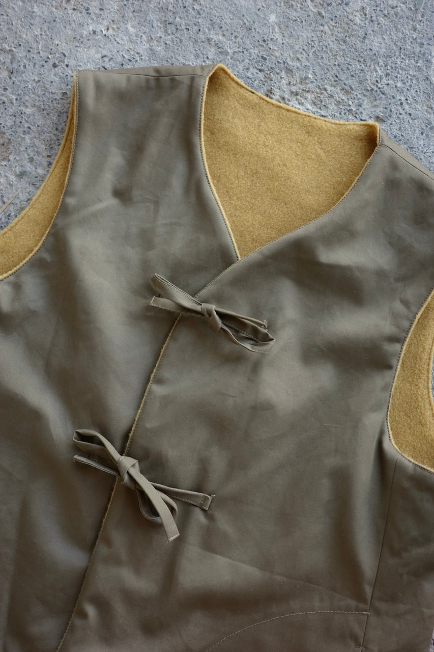 北欧のミリタリーに存在するダブルフェイス仕様のベストを、MINGらしいアレンジで再構築した1着。