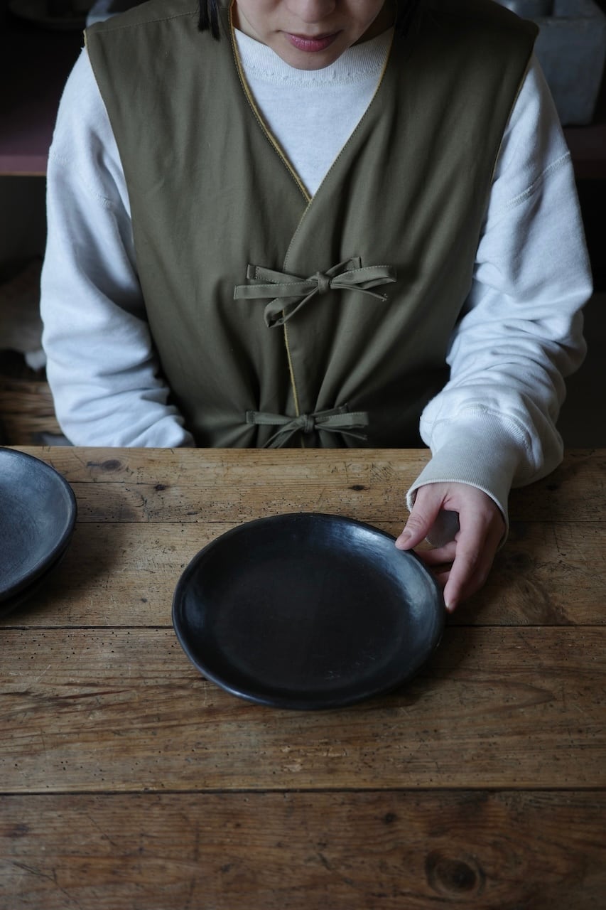 乾燥したら、伝統的な薪窯で焼成します。これによって粘土混合物中の岩が熱と反応して、関器に独特の黒色を与えます。焼成後、陶器を冷却し、滑らかな石と抹茶の葉で磨き、輝きと耐久性を高めます。