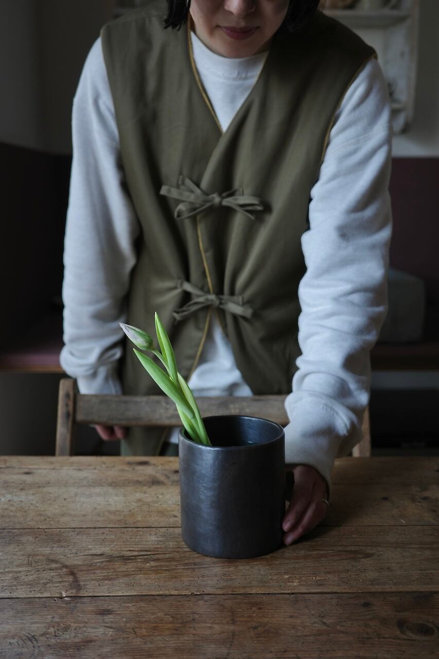 ◎抽楽を使用していない、素焼きのような状態ですので、花器など数時間以上水分を入れておく用途には不向さです。ツールスタンドなどを花器として使用される場合は、カバーとしてお使いください。(料理の盛り付け用など、食後に洗うような使い方であれば、問題ありません)