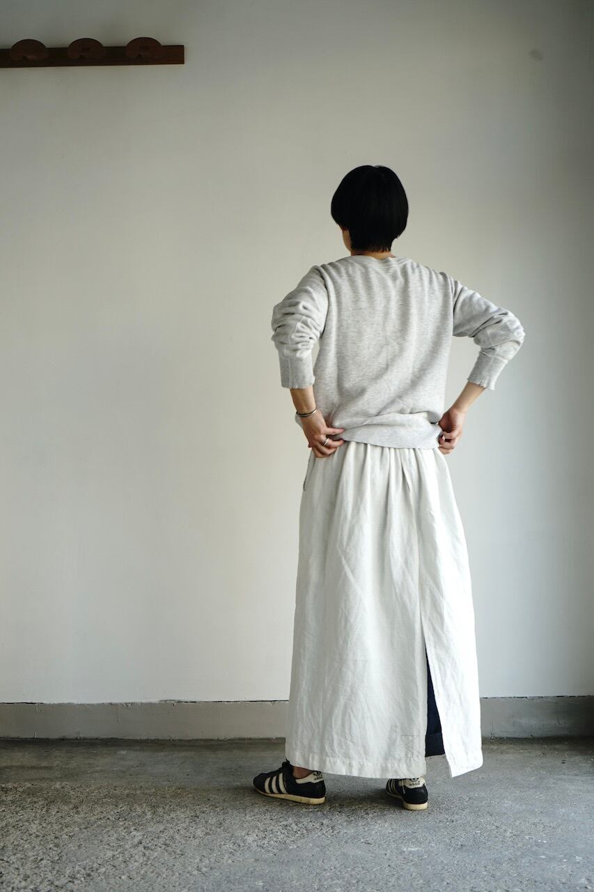 長さがしっかりあるので汚れや埃除けとしてはもちろん、作業用としてだけではなくてラフな日常着の上からさっと腰に巻いても素敵ですよ。