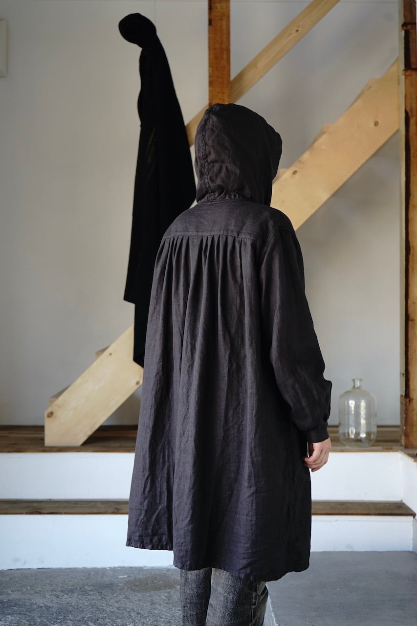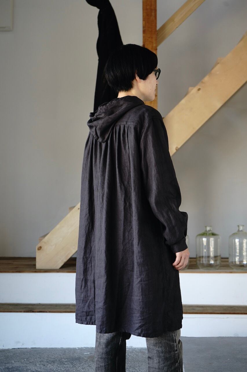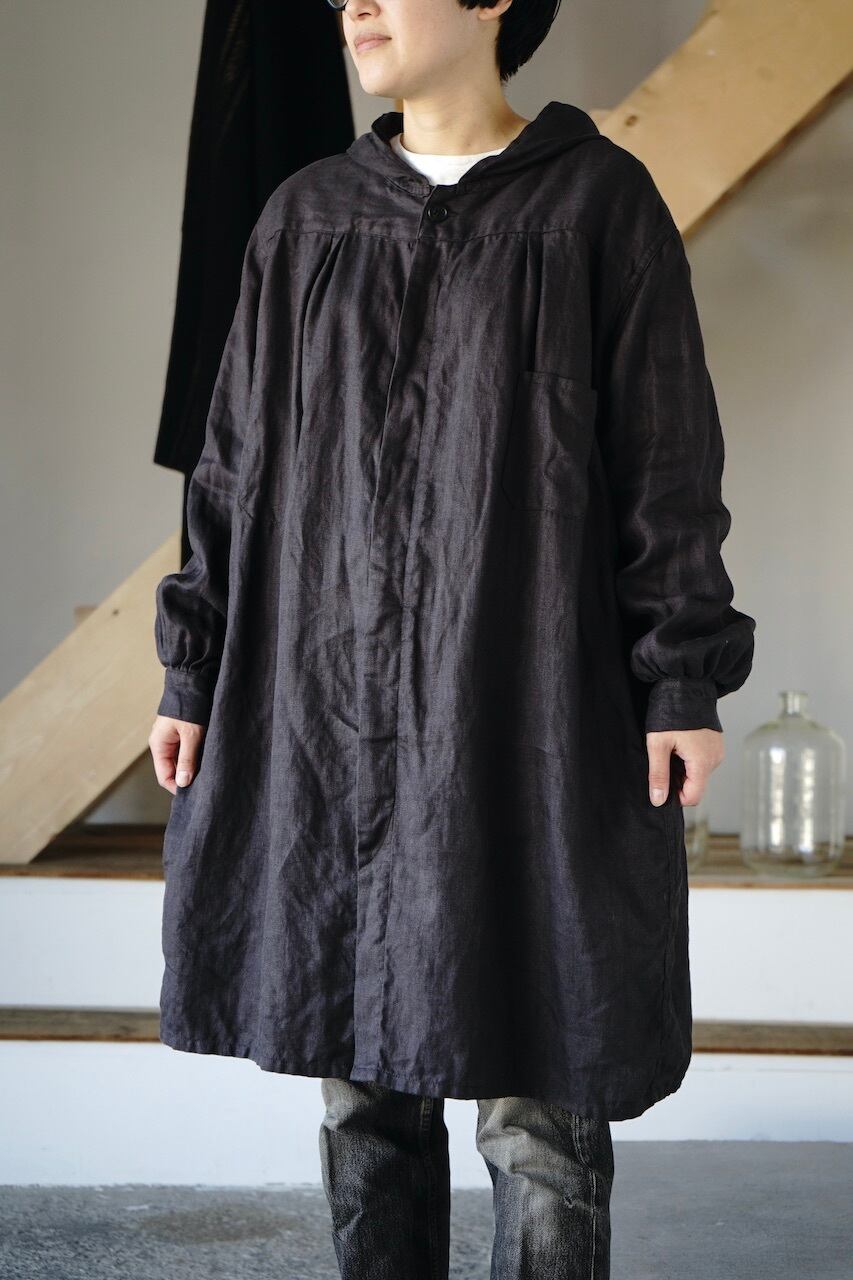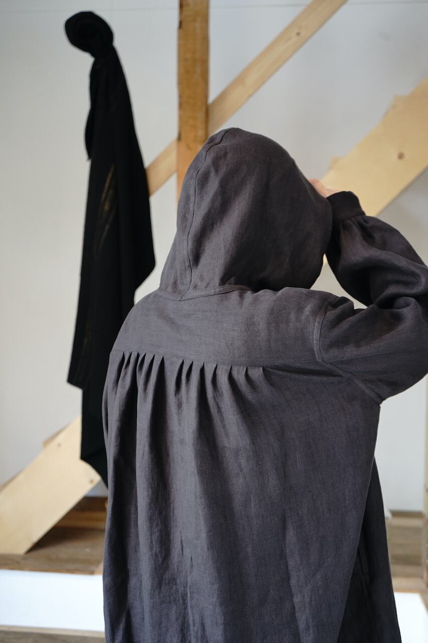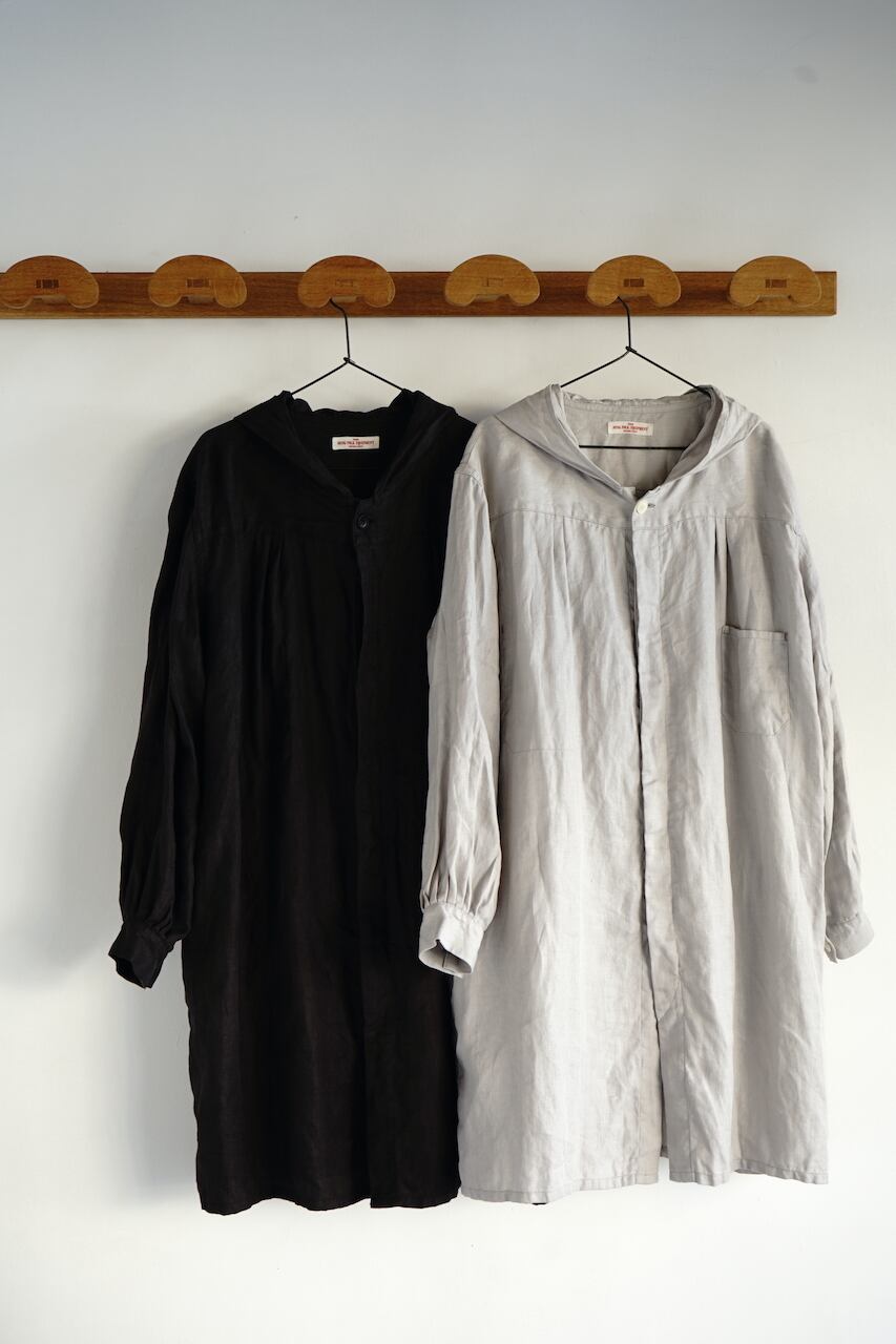 暑い夏でも冷房の効いた室内や、朝晩の寒暖差、日除けとしてや、ちょっとキチンと感も演出できるような日常のリネンスモック。
