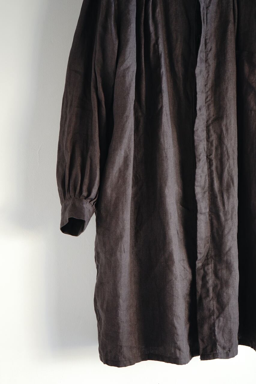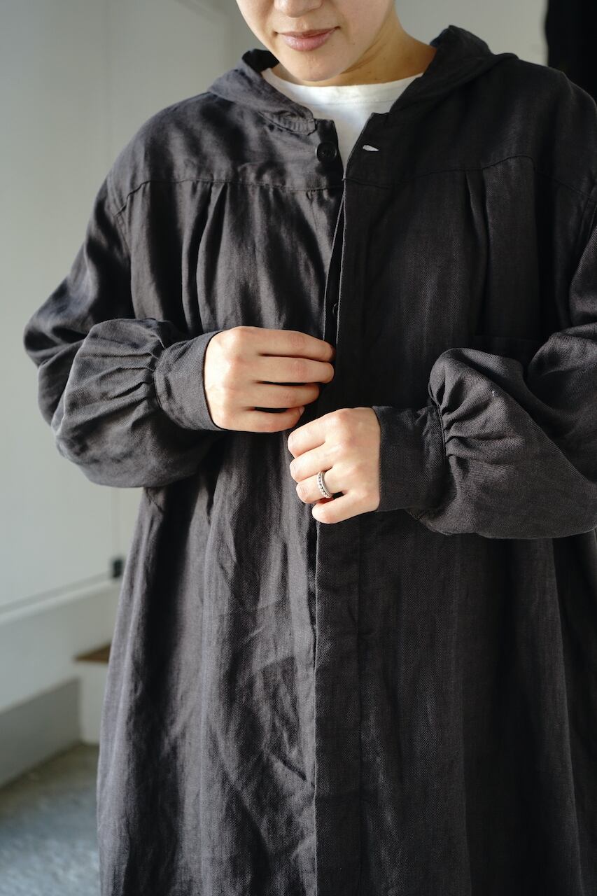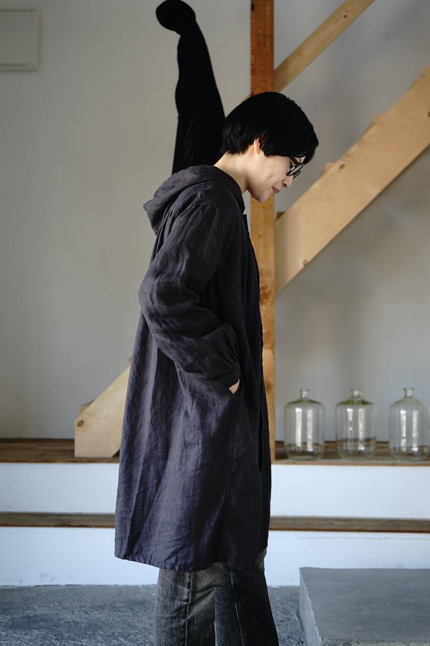 シャリ感と着込むにつれてどんどん滑らかにやわらかく風合いを増すヘリンボーンリネン。じゃぶじゃぶお洗濯をして、シワ感も楽しみながら取り入れていただきたいです。ボタンは水牛ボタンを使用しています。