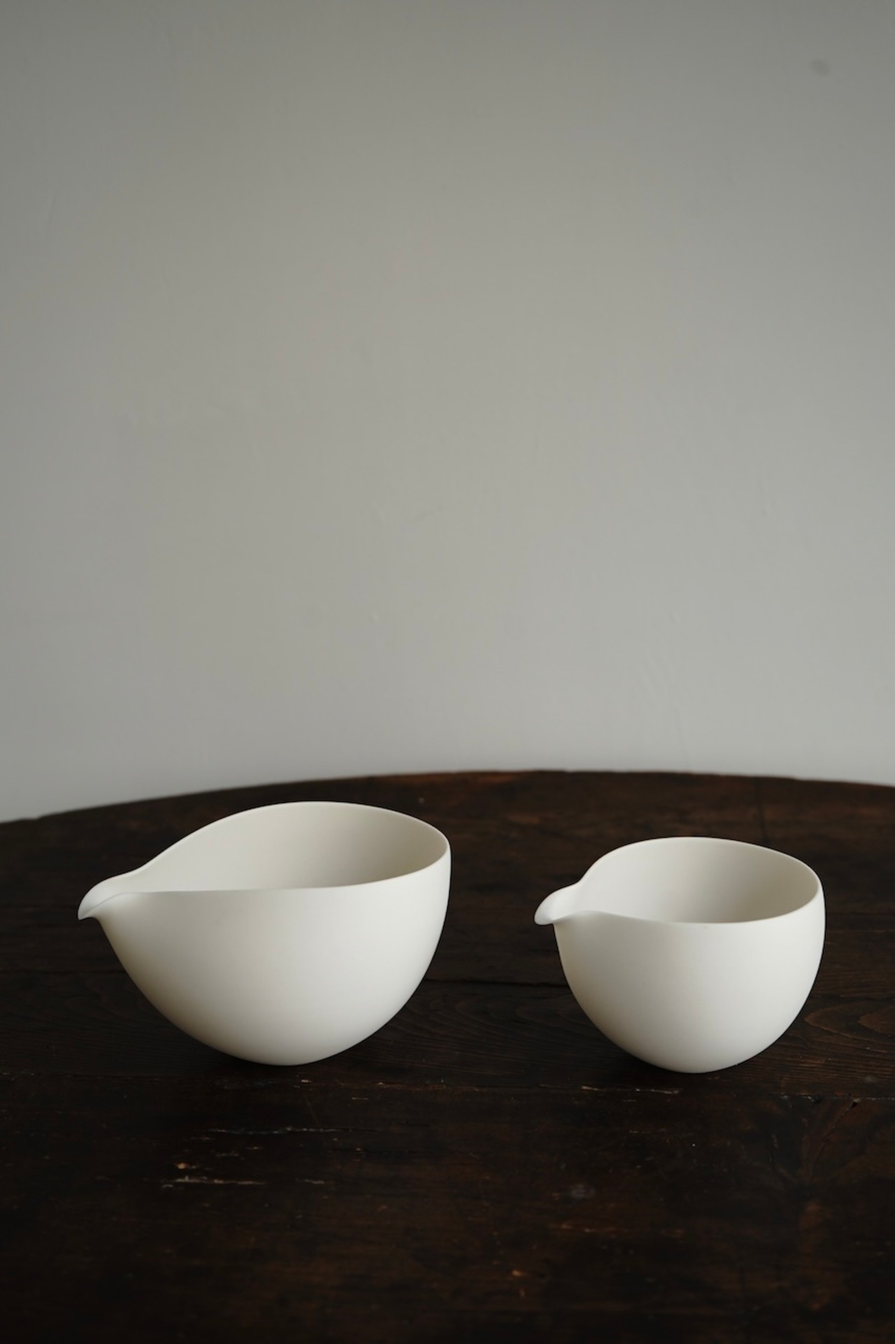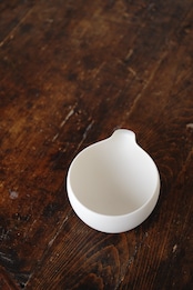 不純物が少なく高温で焼成するため、きめ細かな肌質と繊細な造りがなんとも魅力。磁器では珍しい、釉薬を使わない”焼き締め”にて作られているのも特徴の一つです。艶のないマットな質感がとても心地よいです。