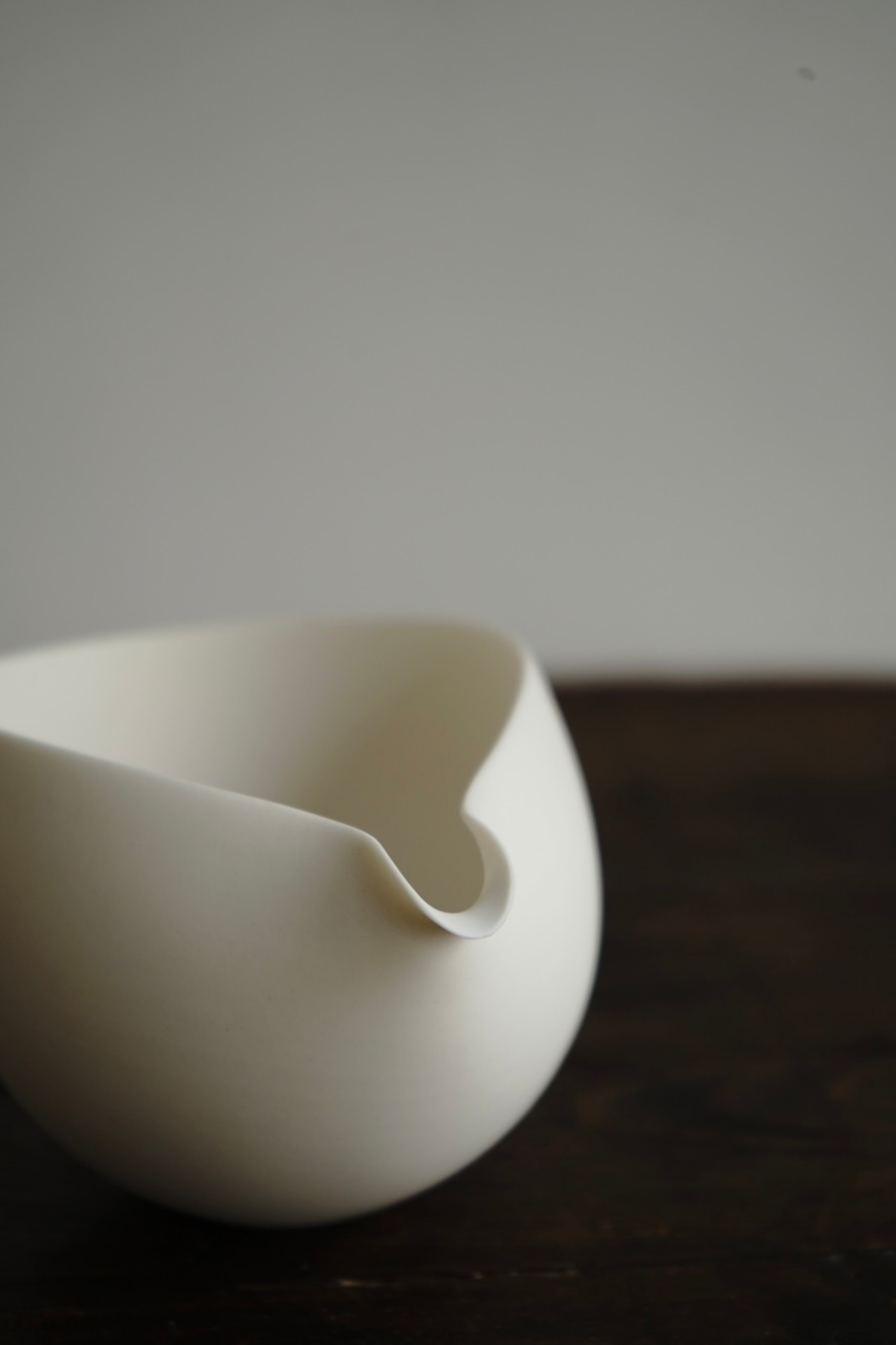 不純物が少なく高温で焼成するため、きめ細かな肌質と繊細な造りがなんとも魅力。磁器では珍しい、釉薬を使わない”焼き締め”にて作られているのも特徴の一つです。艶のないマットな質感がとても心地よいです。